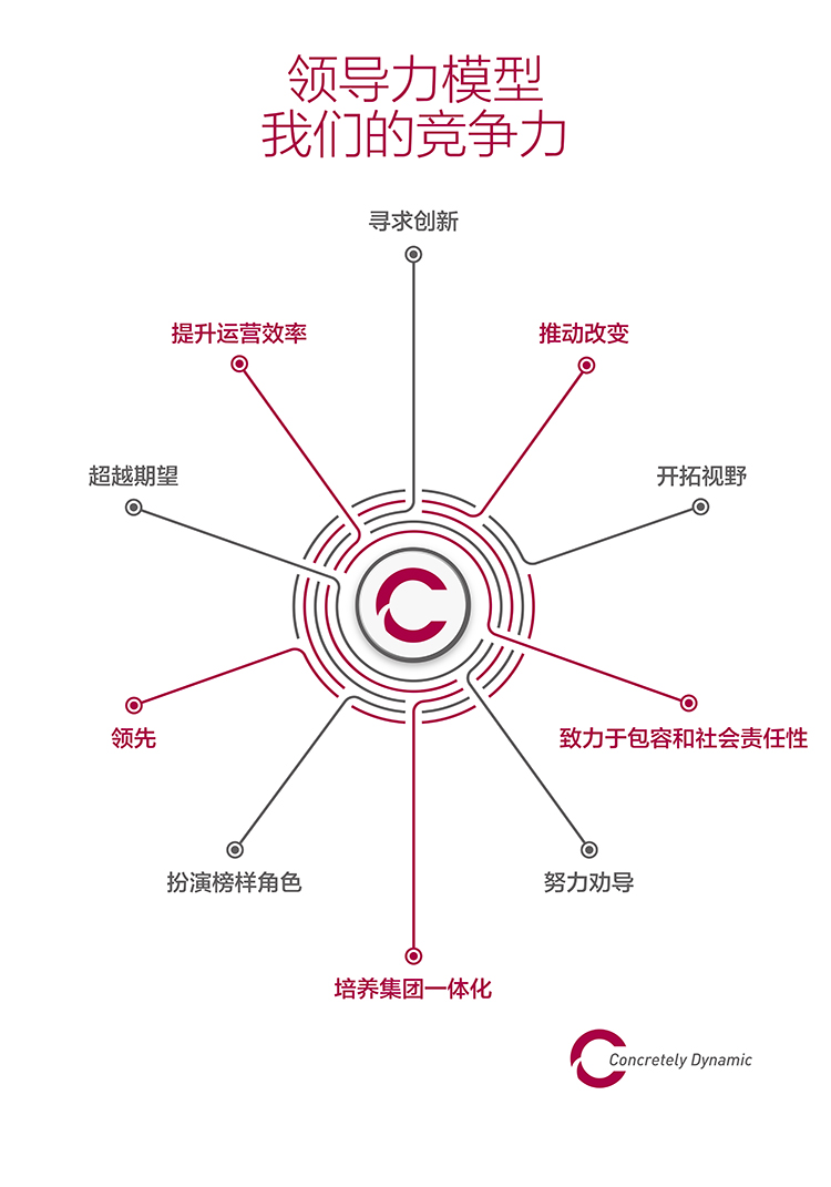 這些價(jià)值觀轉(zhuǎn)化為一個(gè)能力模型——我們集團(tuán)的領(lǐng)導(dǎo)力模型——由10個(gè)以特定行為指標(biāo)定義的勝任能力。由集團(tuán)道德準(zhǔn)則和價(jià)值觀規(guī)范的我們行為,與我們實(shí)現(xiàn)的目標(biāo)同樣重要。